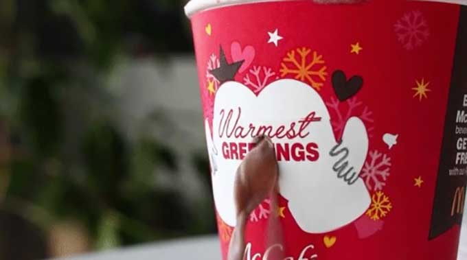 Yesterday they drew hands on the mitten thumbs to spread good cheer. Today they poked a hole in the cup to release a tubful of holiday joy.