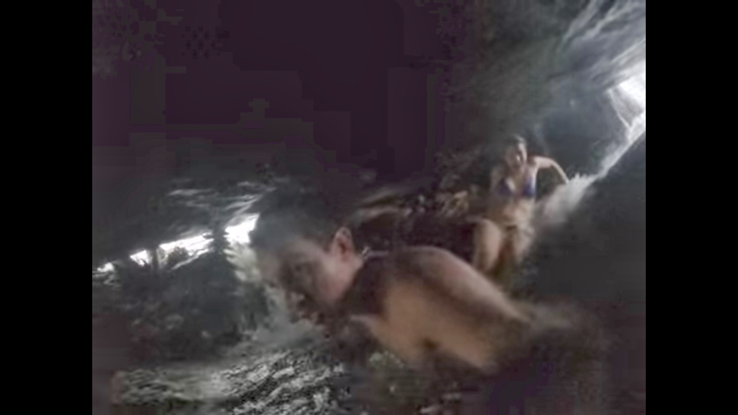 Pedra Que Engole (“Swallow Rock") is an underground cave in Trindade, Brazil. People jump into it, travel through the water-filled cave for a little over 30 seconds, and are ejected into a nearby pool of water. https://youtu.be/fO6y_DNQog4